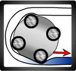 A pillow of fluid is formed between the rollers. This is specific to the ID of the tubing and the geometry of the rotor. Flow rate is determined by multiplying speed by the size of the pillow. This pillow stays fairly constant except with very viscous fluids. |
